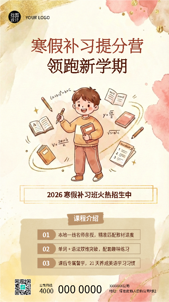 寒假补习火热招生领跑新学期手机海报