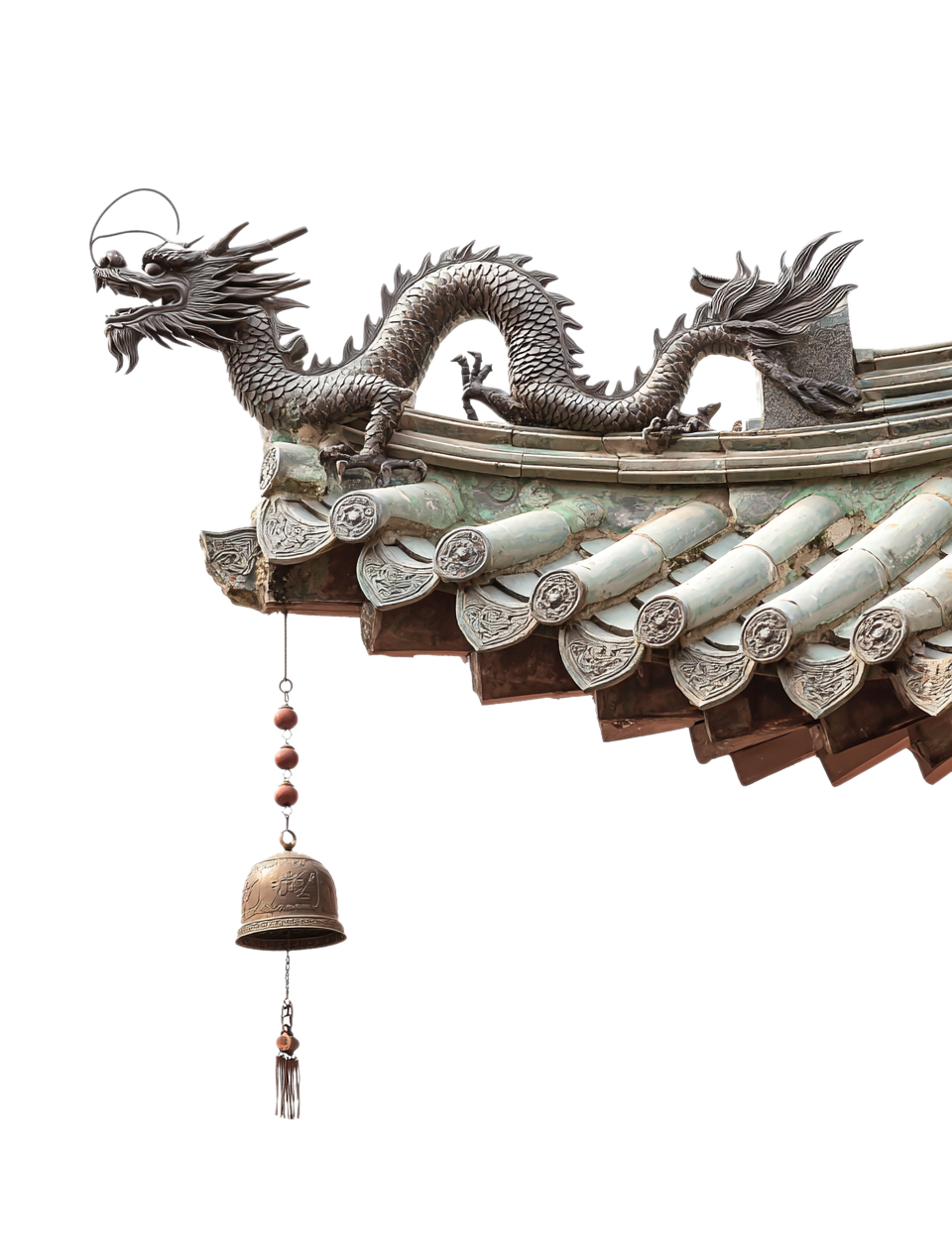 中国风古建筑上的龙和风铃素材