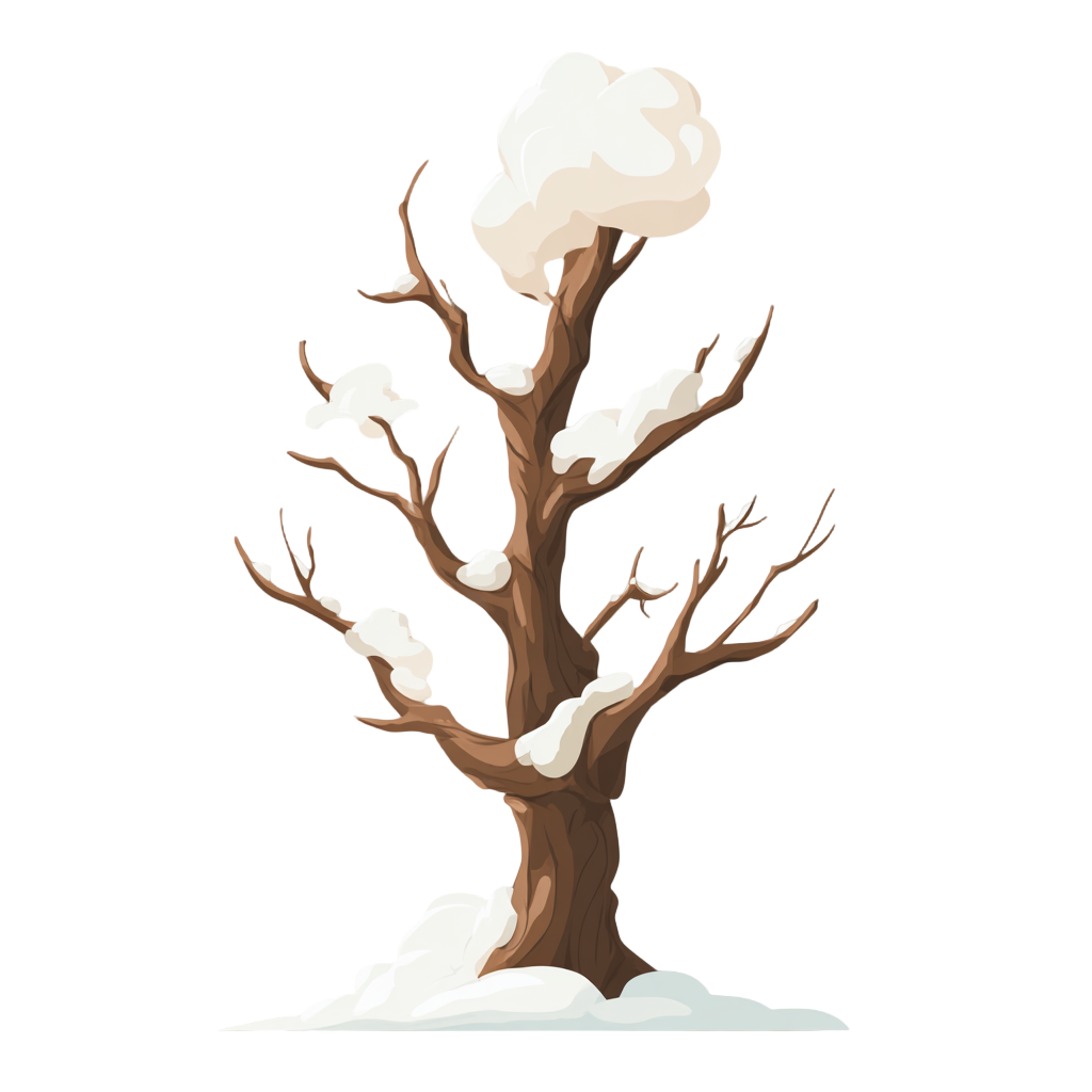 雪中干枯树枝霜降插画