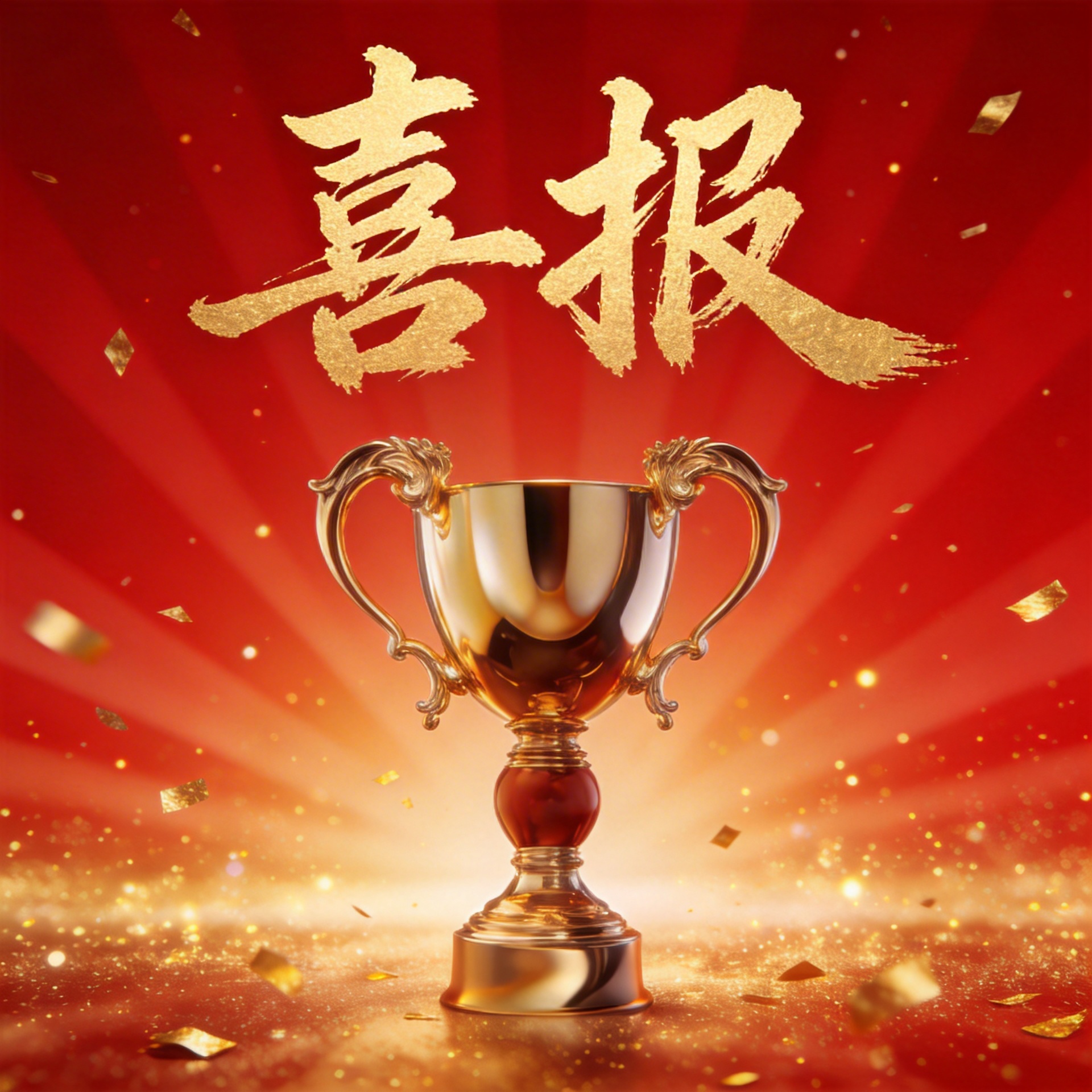 红色喜报创意奖杯微信公众号首图