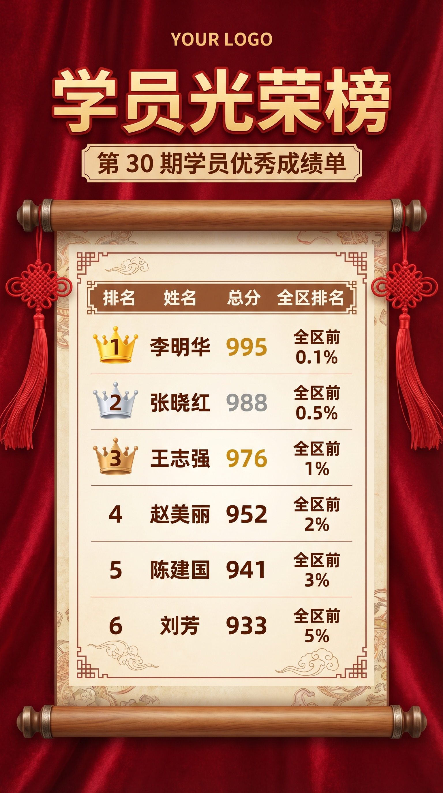 学员光荣榜优秀成绩单简约手机海报