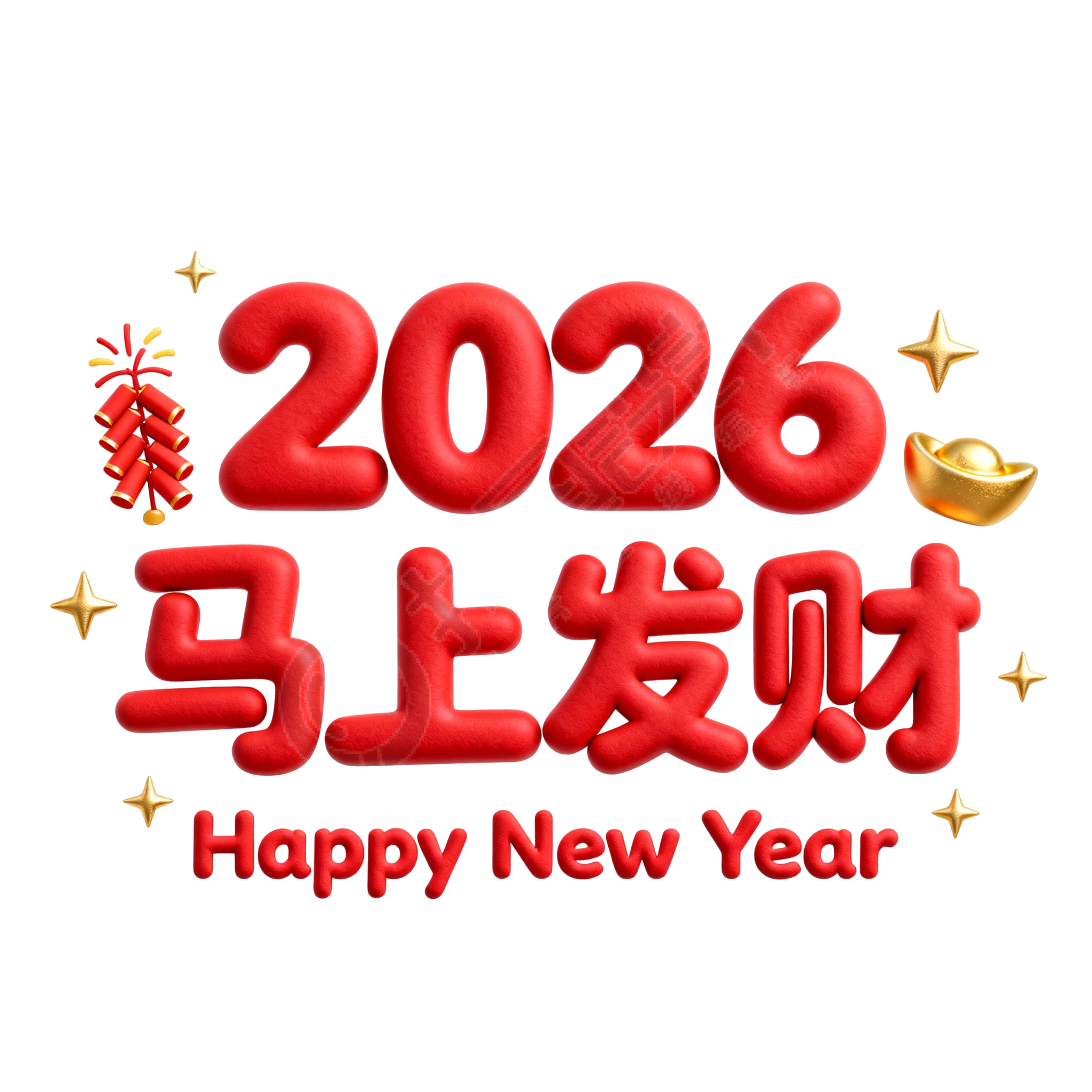 找图网提供《2026 马上发财》高清免扣素材下载,本图片属于节日的艺术字,图片编号是:45086。尺寸为2048 x 2048像素,分辨率为72DPI,支持透明png格式下载。找图网原创版权,用户可根据找图版权协议放心使用。