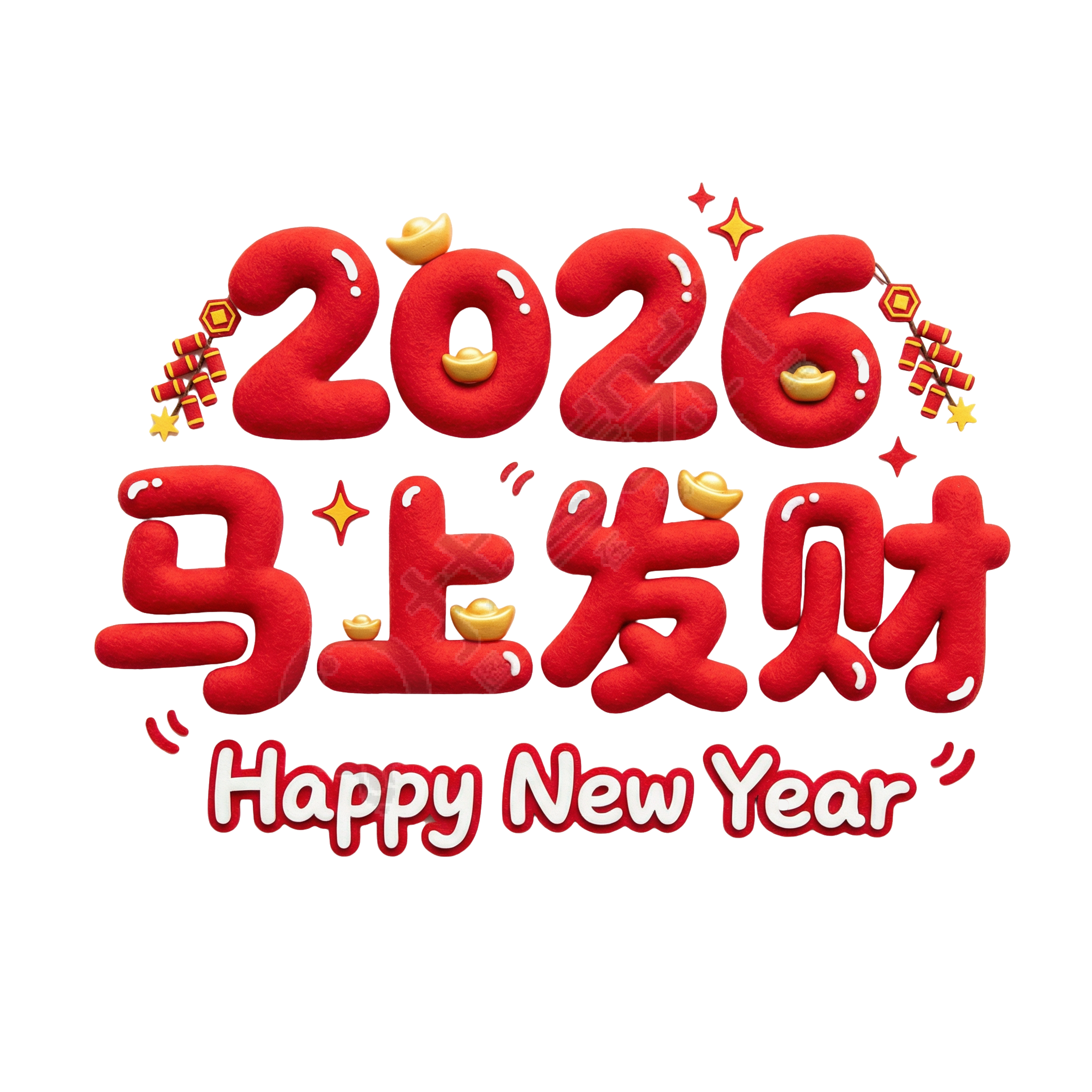 找图网提供《2026马上发财》高清免扣素材下载,本图片属于节日的艺术字,图片编号是:45096。尺寸为2048 x 2048像素,分辨率为72DPI,支持透明png格式下载。找图网原创版权,用户可根据找图版权协议放心使用。